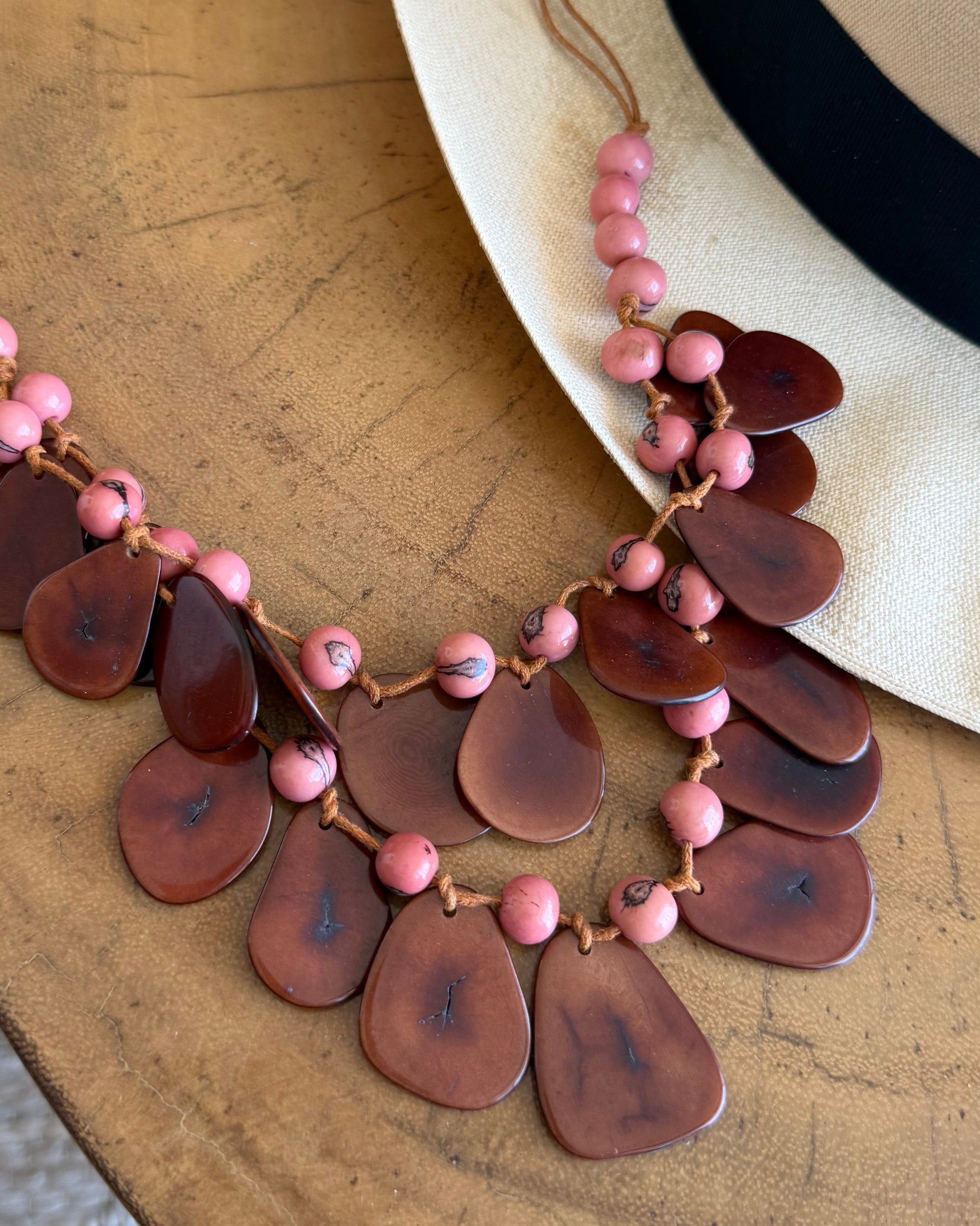 JENI TAGUA NECKLACE. Jeni is an artisan’s design that I love and asked to add to my collection. I added my touch with the combo of beautiful colors. She’s such a cool design that is very uniquely tagua. I hope you love it too!
