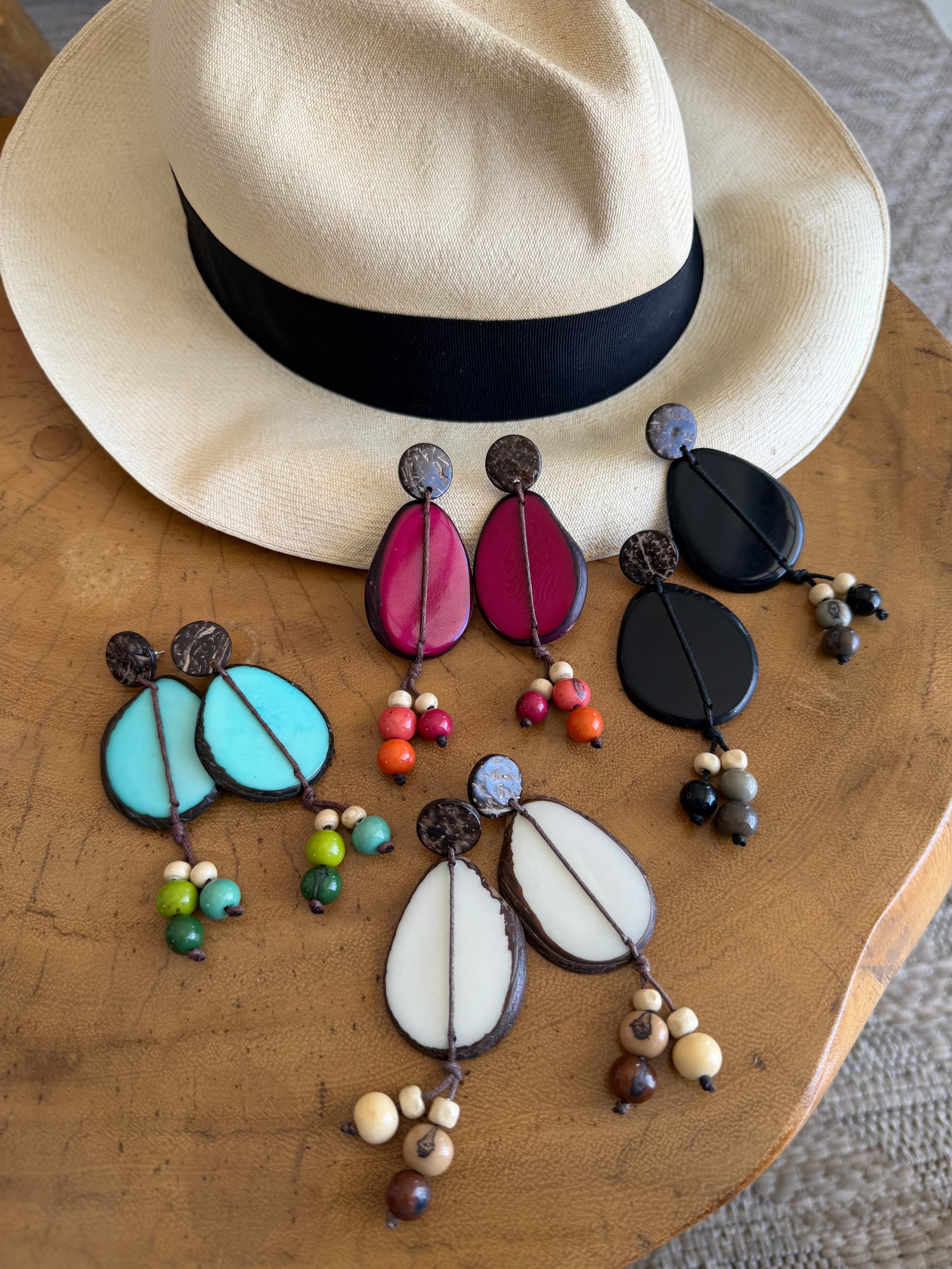 Tagua can be found in the best boutiques to add an organic, earthy vibe to all your looks. Our various shapes, sizes and colors can be styled to fit any look from coastal preppy to cool boho. TAGUA BELLA is designed by me in collaboration with the talented artisans in my region of Ecuador. Each is artisan-made by hand. TAGUA BELLA is fair-trade, purchased from the maker, and making a difference in their lives.