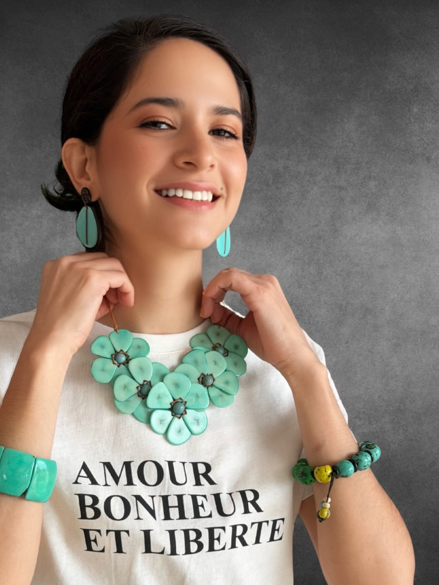 Don’t miss out on our coordinating bracelets and earrings. Tagua makes a beautiful gift! Ecuador’s treasure is yours! Muchas Gracias!